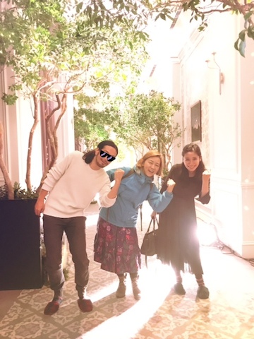 わたしとジョーさん、お手洗いに立ったところだったので、スリッパなのがウケる。笑